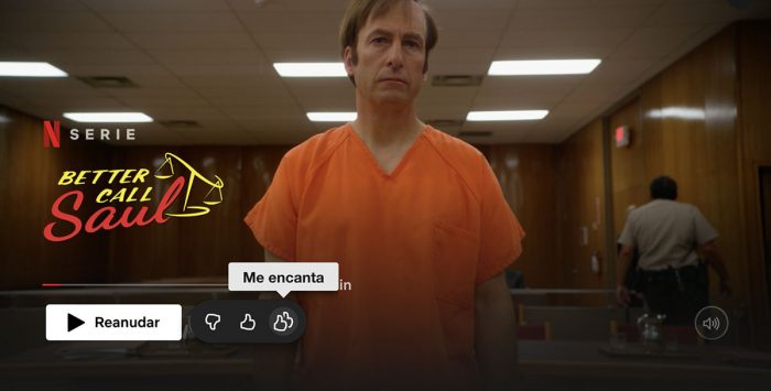 Netflix explica la diferencia entre un pulgar para arriba y dos con la siguiente pregunta: “(Esta serie de televisión) te gusta o te encanta?”. En fin, no es otra cosa que “otro modo para que los abonados hagan saber a la Plataforma qué tipo de serie o película quieren ver”.